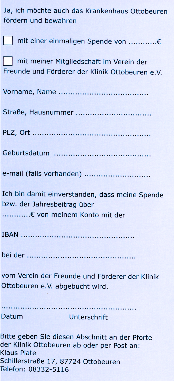 Sie unterstützen wertvolle Projekte und Anschaffungen für die Klinik Ottobeuren